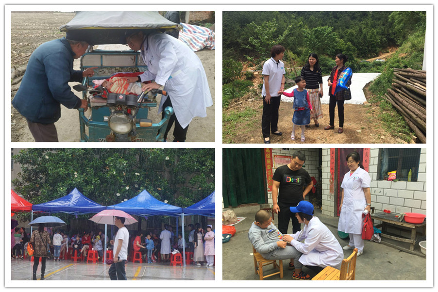 在安徽临泉县,当地卫计委领导亲自带领青年专家们来到贫困户家中看望患儿。当地村民看到穿白衣的医生们,急切地一把拉住医生咨询,青年医生也就地即时为患儿检查,并仔细叮嘱患儿家长日常护理及预防保健知识。